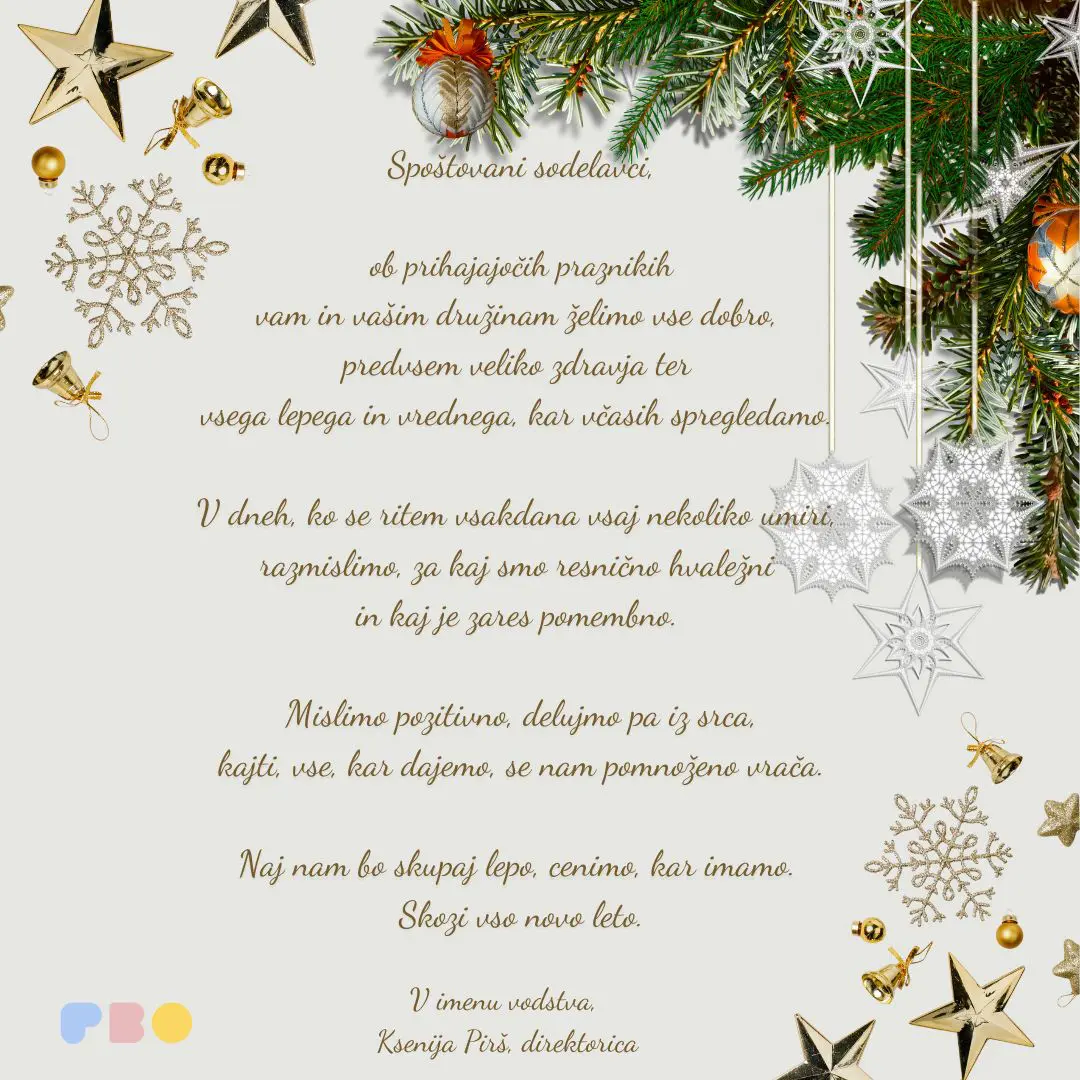 Ob prihajajočih praznikih vam in vašim družinam želim vse dobro, predvsem veliko zdravja ter vsega lepega in vrednega, kar včasih spregledamo.