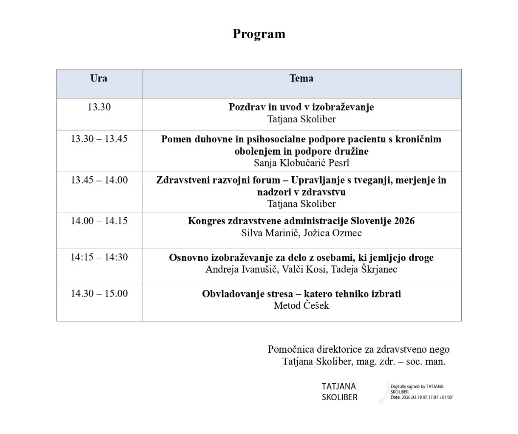 Izobraževanje v sejni sobi mansarde bolnišnice je potekalo 27.3.2026, od 13.30 do 15.00 ure.