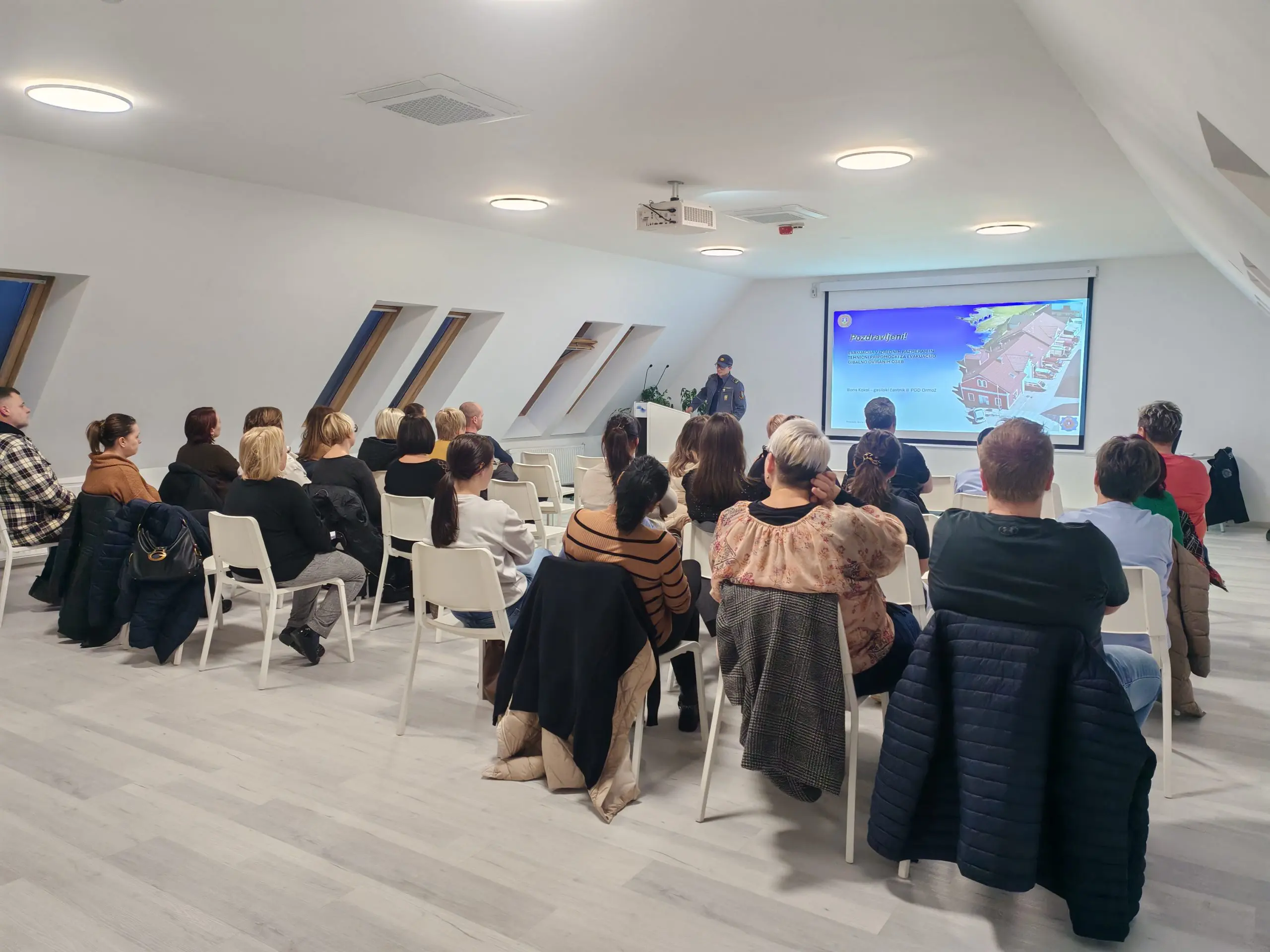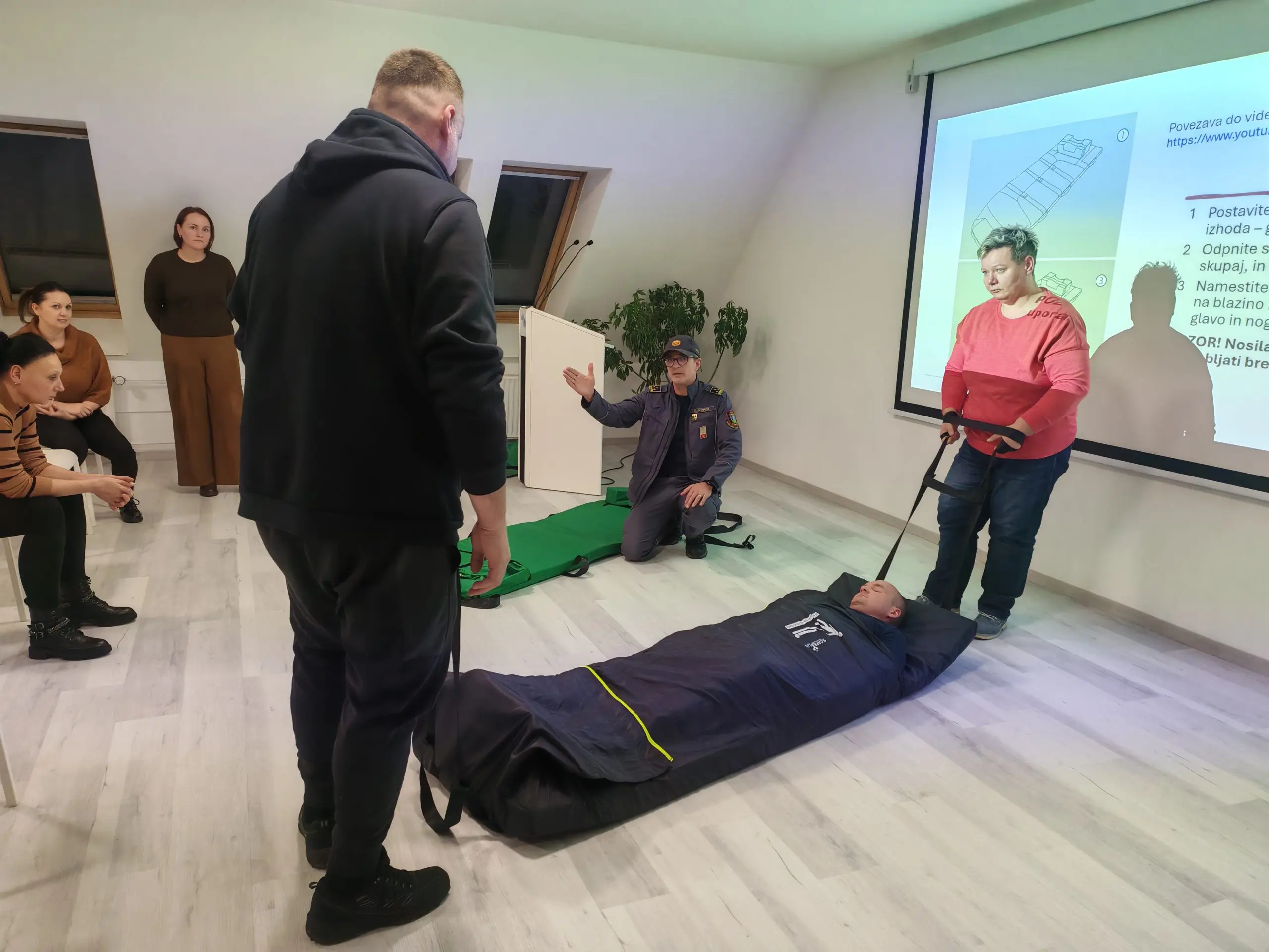 V petek, 23. januarja 2026, smo izvedli učno delavnico z naslovom Uporaba evakuacijske blazine, ki jo je vodil Boris Kokol iz Prostovoljnega gasilskega društva Ormož. Delavnice se je tokrat udeležilo 33 zaposlenih. Pridobili smo potrebna znanja za morebitno evakuacijo pacientov in osebja v primeru požara ali drugih elementarnih nesreč. Uporabo blazine za evakuacijo smo vadili s prostovoljcem na delavnicah, tako smo osvojili samo tehniko uporabe in pridobili občutek za reševanje oseb. Uporabo blazine smo utrdili tudi na stopnišču, kjer poteka evakuacijska pot. S predstavitvijo in praktičnim preizkusom blazine smo bili zelo zadovoljni.